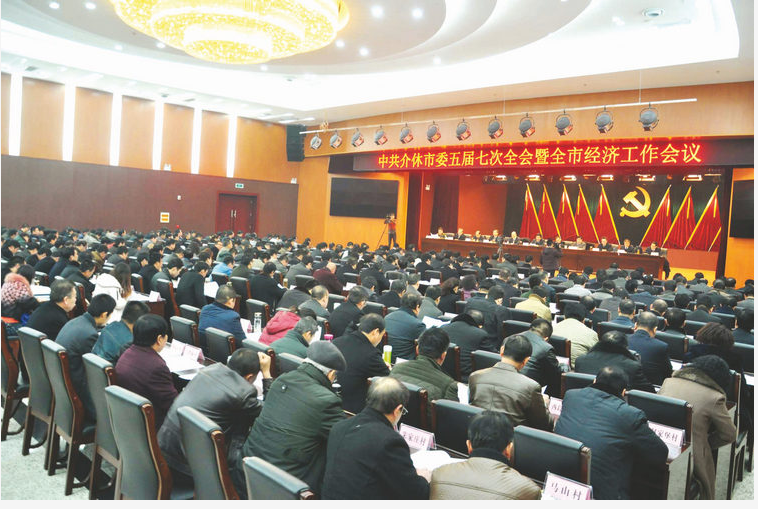 1月31日,我市召开市委五届七次全体会议暨全市经济工作会议,贯彻落实党的十八大和十八届三中、四中全会精神以及中央经济工作会议,省委、晋中市委全会和经济工作会议精神,总结2014年工作,分析新常态下我市面临的形势,安排部署2015年全市经济社会发展各项目标,审议《中共介休市委关于贯彻落实党的十八届四中全会精神,加快推进法治介休建设的实施意见》(讨论稿),动员全市各级各部门、广大党员干部齐心协力、攻坚克难,奋力开创我市弊革风清、富民强市的新局面。市委委员、候补委员和不是市委委员、候补委员的市级领导出席会议。市四套班子领导王继堂、王怀民、李怀珠、吴定元、赵宇、张鑫、苟富杰、张宝贵、寇建文、王宁照、李宏等在主席台就坐。